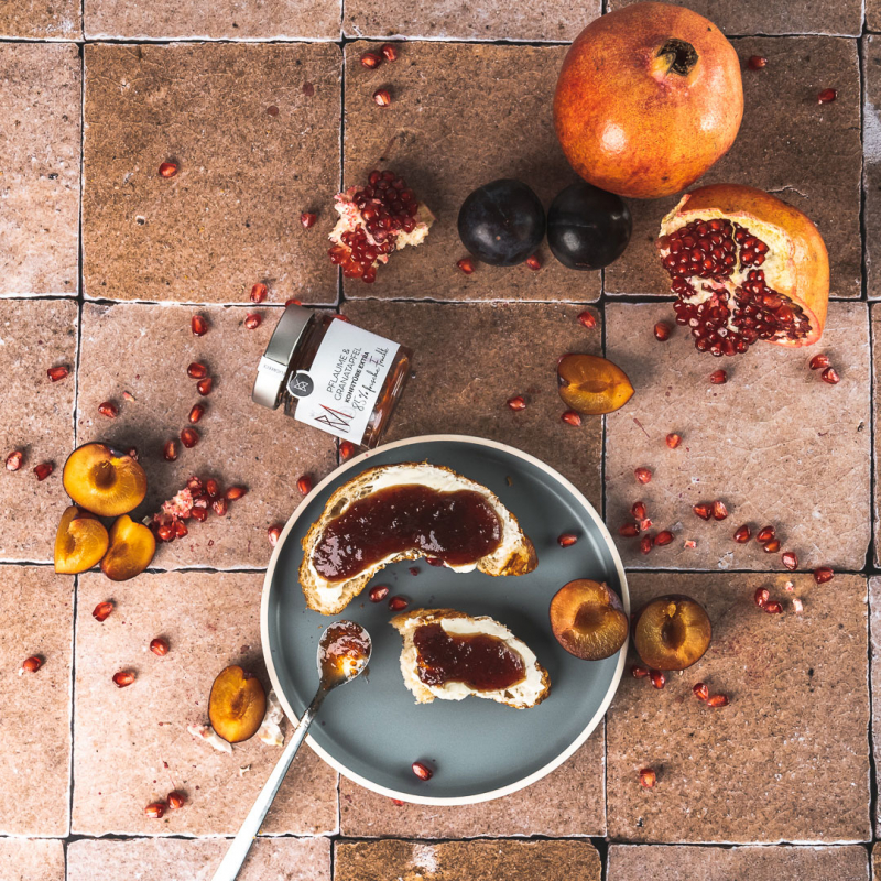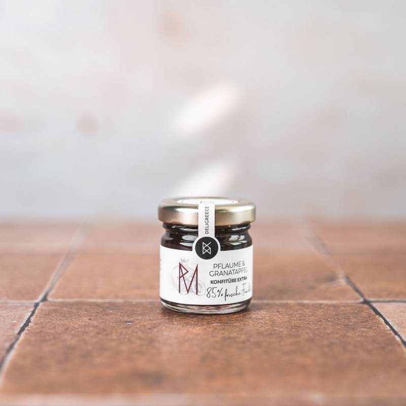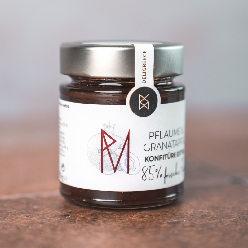 Unsere Pflaume-Granatapfel Konfitüre Extra wird aus unbehandelten, erntereifen Pflaumen und Granatäpfeln, etwas Zitronensaft und Zucker hergestellt. Das Ergebnis ist ein purer Genuss mit einem hochintensiven Geschmack und einem einzigartig fruchtigen Aroma. In dieser Konfitüre finden Sie 85% frische Pflaumen und Granatäpfel, die auf dem Markt unglaublich intensiv und einzigartig sind. Wir verwenden keine Zusatzstoffe, Geliermittel oder künstliche Stoffe - nur pure Natur. Genießen Sie diese köstliche Konfitüre auf verschiedene Arten, zum Beispiel als köstlichen Klecks auf griechischem Sahnejoghurt, garniert mit Walnusssplittern und einem frischen Minzblatt. Lassen Sie sich von der grandiosen Kombination aus Pflaume und Granatapfel verzaubern und gönnen Sie sich eine außergewöhnliche Geschmackserfahrung.