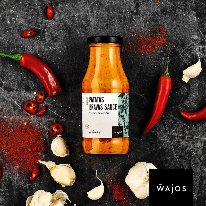 In der spanischen Küche werden Patatas Bravas oft als Vorspeise in Tapas Bars serviert. Sie sind ein beliebtes und leckeres Soulfood. Die Kartoffeln werden in Würfel oder andere Formen geschnitten und in Öl angebraten. Doch Patatas Bravas schmecken am besten mit einem Dip. Und genau dafür ist unsere Patatas Bravas Sauce die perfekte Wahl! Mit ihrer würzig-scharfen Note verleiht sie den Kartoffelecken den letzten Schliff und sorgt für ein geschmackliches Highlight. Genießen Sie diese typisch spanische Spezialität und verwöhnen Sie Ihren Gaumen mit mediterranen Aromen.
