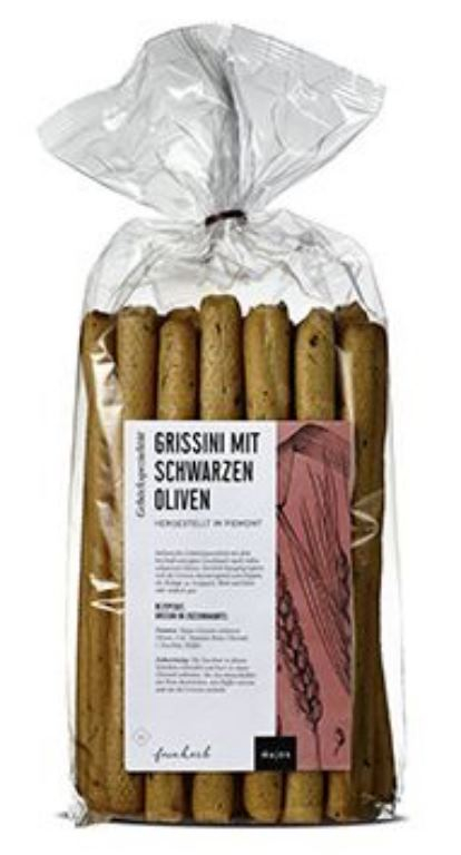 Die Grissini mit schwarzen Oliven aus dem Piemont sind eine leckere italienische Gebäckspezialität mit einem herzhaft würzigen Geschmack. Die Stücke von reifen, schwarzen Oliven werden in den Teig eingearbeitet und verleihen den Grissini ein einzigartiges Aroma. Herrlich knusprig eignen sich diese Crissini perfekt zum Dippen, als Beilage zu Antipasti, Wein und Käse oder einfach pur.