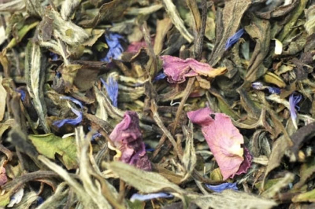 Edler Weißer Pai Mu Tan Tee mit einem blumig, weichen, fruchtigen und zarten Rosengeschmack. Wenn Rosen im Tee sind, gibt dies immer einen eleganen Geschmack. Die Königin der Blumen hat ein unvergleichliches Aroma in unserer Mischung.
