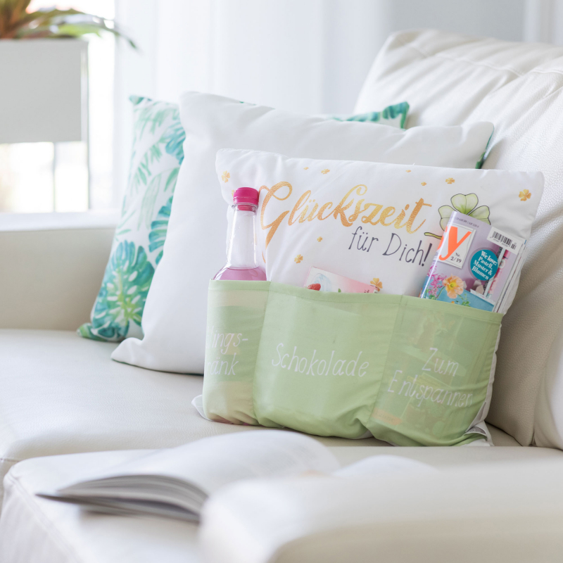Das Sofahelden Kissen Glückszeit lädt Sie ein, sich eine glückliche Auszeit zu gönnen. Lehnen Sie sich zurück, machen Sie es sich auf dem Sofa gemütlich und genießen Sie Ihre persönliche Glückszeit. Lassen Sie den Stress und die Sorgen des Alltags hinter sich und tauchen Sie ein in eine Welt des Wohlbefindens und der Entspannung.Dieses befüllbare Geschenkekissen eignet sich auch hervorragend als Geschenk für Ihre Liebsten. Zeigen Sie ihnen, wie wichtig es ist, sich Zeit für sich selbst zu nehmen und Glücksmomente zu schaffen. Das Kissen ist nicht nur ein dekoratives Element, sondern auch ein praktischer Begleiter für jeden, der eine Auszeit vom Alltag sucht.