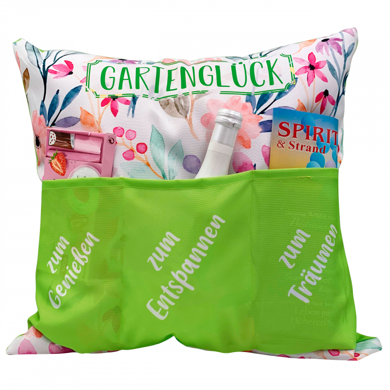 Besonders praktisch sind die integrierten Taschen, die Platz für Snacks, das Handy, Getränke und andere Kleinigkeiten bieten. So haben Sie alles griffbereit und können Ihren Aufenthalt im Freien voll und ganz genießen, ohne ständig aufstehen oder suchen zu müssen. Verwandeln Sie Ihren Garten in eine entspannte Oase und machen Sie es sich auf den Sofahelden Outdoor Gartenglück Kissen gemütlich.Die Kissen sind nicht nur komfortabel und funktional, sondern auch ein stilvolles Accessoire für Ihren Garten. Sie können sie überall platzieren, wo Sie sich am wohlsten fühlen - sei es auf Ihrer Gartenbank, Ihrer Liegewiese oder Ihrem Lounge-Bereich. Genießen Sie die warmen Sonnenstrahlen, während Sie auf diesen Kissen relaxen und die Natur um sich herum genießen.