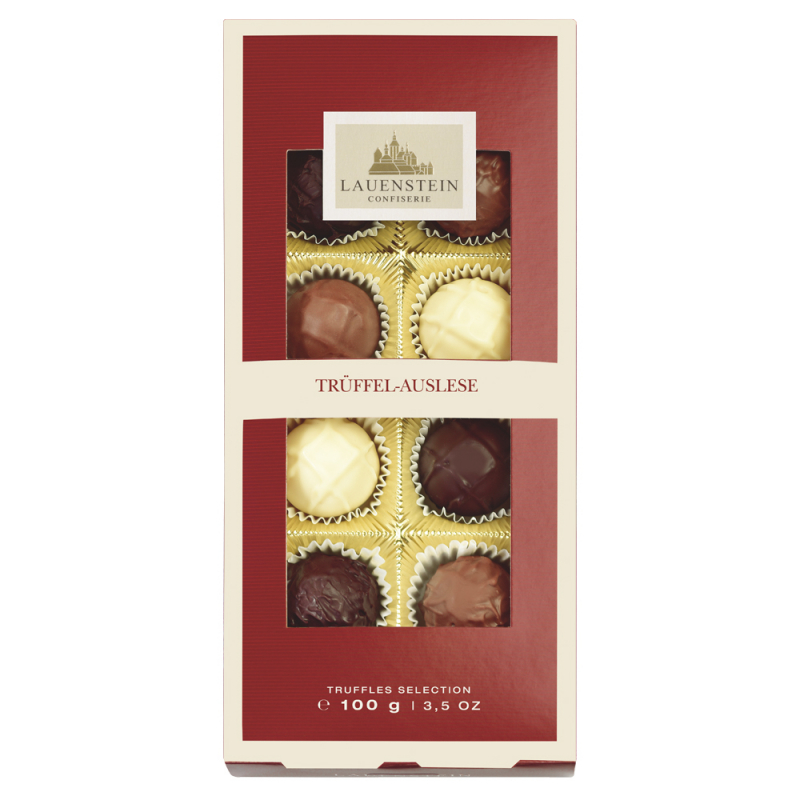 Die Trüffel Auslese mit Alkohol der Confiserie Lauenstein bietet fünf erlesene Trüffel-Variationen für anspruchsvolle Genießer. Die Sorten umfassen Rum-Trüffel, Eierlikör-Sahne-Trüffel, Himbeergeist-Trüffel, Schokoladentrüffel und Sahne-Trüffel. Jede Praline wird mit großer Sorgfalt und Liebe zum Detail handgefertigt, wobei nur die feinsten Zutaten und erstklassige Schokolade verwendet werden. Diese Kombination aus erlesenen Aromen entfaltet sich zart auf der Zunge und verspricht puren Genuss. Perfekt als edle Leckerei für sich selbst oder als luxuriöses Geschenk für besondere Anlässe.