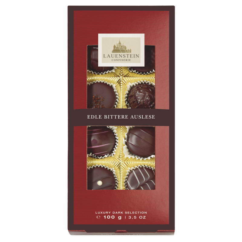 Die "Luxury Dark Selection" der Confiserie Lauenstein bietet eine erlesene Auswahl an acht exquisiten Pralinen und Trüffeln, die für wahre Genießer geschaffen wurden. Die bittersüße Auslese umfasst köstliche Sorten wie Rum-Trüffel, Gin-Lemon-Trüffel, Jamaica-Rum-Trüffel, Himbeer-Waldfrucht-Trüffel, Scotch-Whisky-Trüffel, Prosecco-Trüffel, Espresso-Trüffel und Schokoladen-Trüffel. Jede Praline wird in aufwendiger Handarbeit und nach traditionellen Rezepten aus reinsten, erlesenen Rohstoffen gefertigt. Ein unverwechselbares Geschmackserlebnis, das perfekt als luxuriöses Geschenk oder für besondere Genussmomente geeignet ist.