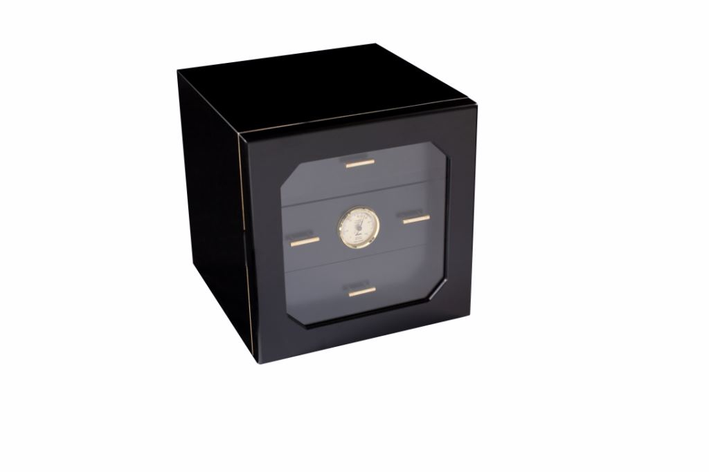 Der Chianti Deluxe Humidor aus spanischem, hochwertigem Zedernholz, weisst eine hochwertige schwarze Mehrfachlackierung auf. Ein kleiner Humidorschrank mit 3 ausziehbaren Schubladen und Glastüre. Das Haarhygrometer ist von aussen bequem ablesbar.